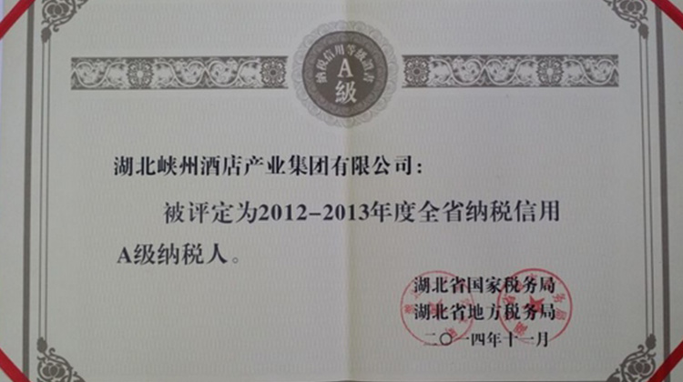 近日,湖北峡州集团被湖北省国家税务局、湖北省地方税务局联合授予全省A级纳税信用企业。