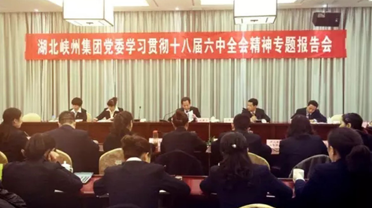 11月7日下午,湖北峡州集团党委组织召开学习贯彻党的十八届六中全会精神专题报告会。集团主管以上党员干部参会学习。集团党委书记、董事长柯新宇同志主持会议。