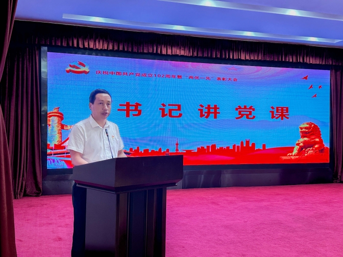 7月1日,峡州集团召开庆祝中国共产党成立102周年暨“两优一先”表彰大会,党委副书记、总经理邱云舟同志讲党课,并进行了专题学习。