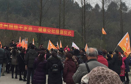 1月2日,由峡州集团武汉峡州国旅组织的“武汉峡州国旅千岁游·健康公社授旗仪式”在清江天龙湾旅游度假区举行。来自武汉等地的近400名游客共聚天龙湾度假区,畅享愉快假期。该旅游团队抵宜,标志着武汉峡州国旅宜昌公司正式启动运营。